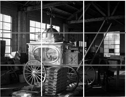 The photo above is a hearse for small children with the rule of thirds drawn on the photo. I ran across the hearse in a feed store in Alvin, Texas. Notice how the back wheel sits very close to the bottom, left, intersecting point and the bottom of the wagon extends along the lower horizontal line.