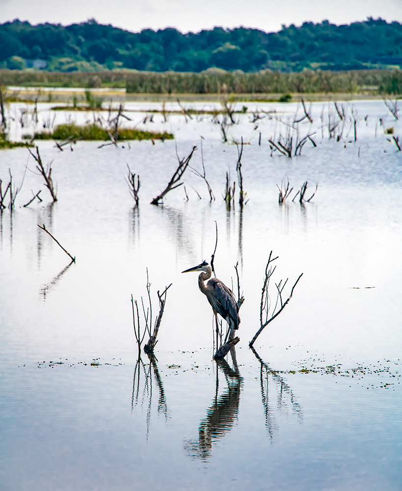 Great Blue Heron and Stickups - Lake Apopka, Florida