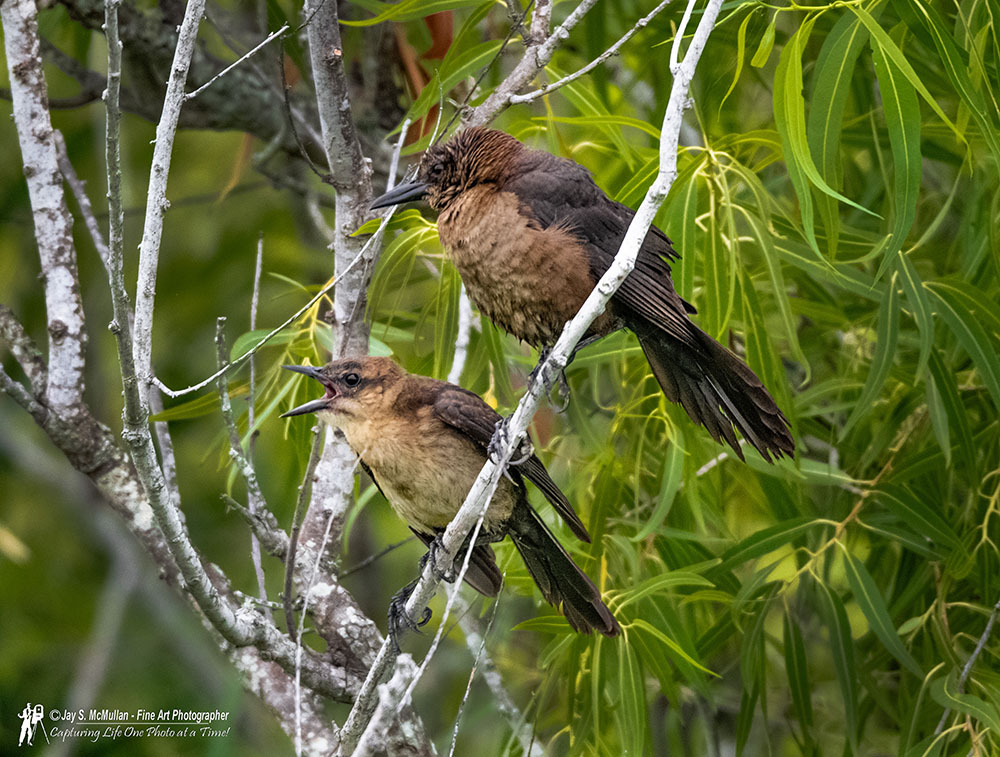 Two Male Boat Tailed Grackles Having a Disagreement - Lake Apopka, Florida