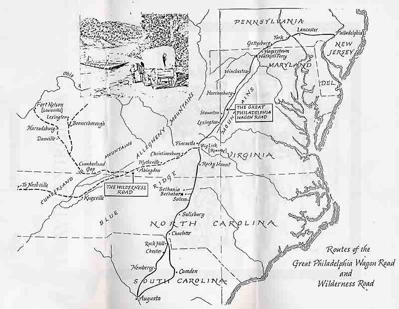 The wagon trains moved slowly southwest from the counties of Rockingham