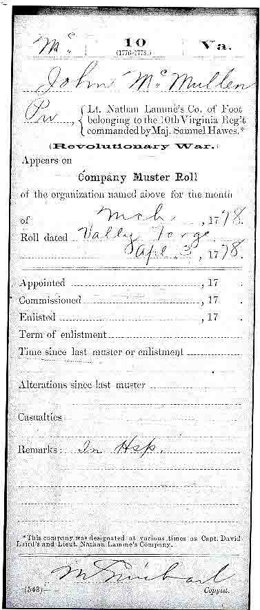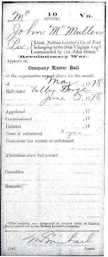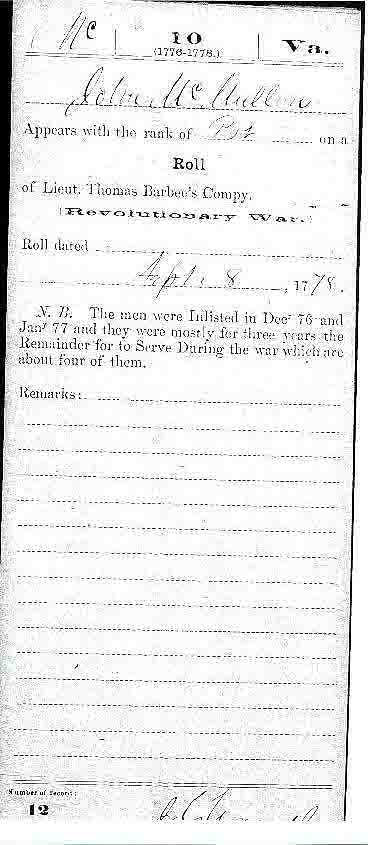 McMullan enlisted and served in the Revolutionary War. Gale Fuller