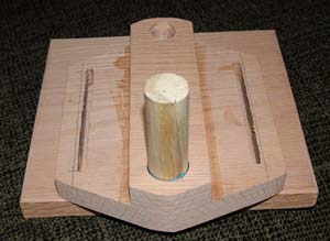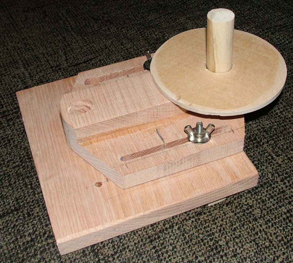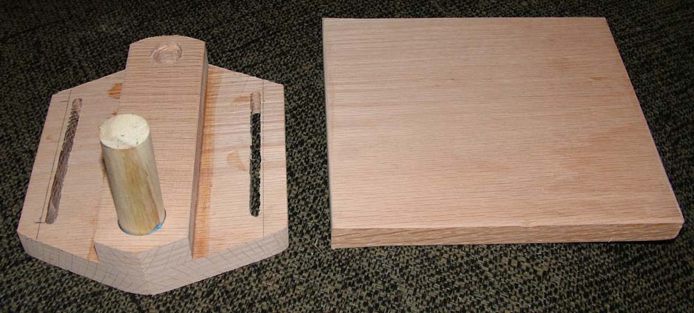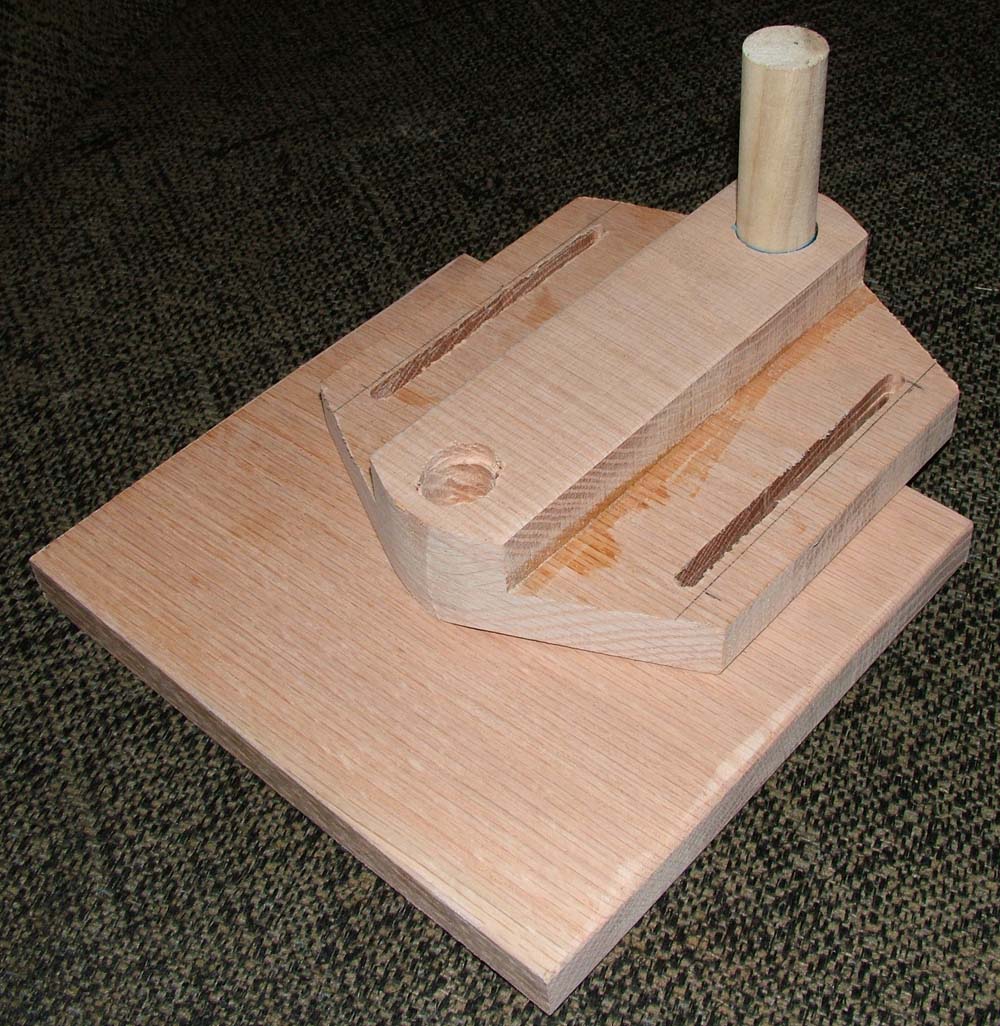 A front view of the jig. Wing nuts and 1/4x20 machine head screws will hold the slider onto the base. |