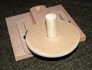 Another view of the finished disk. This was a piece of 1/4" scrap plywood. I used a 1/2" bandsaw blade but I will change that for a smaller blade to make it easier to cut the radius I need. |