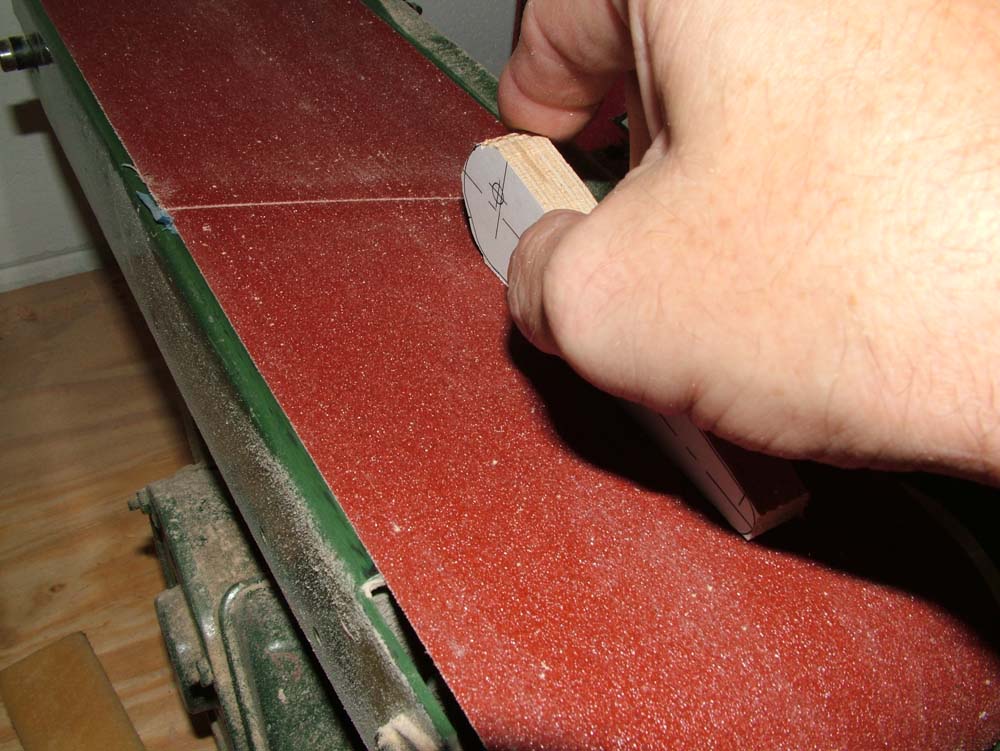Sanding the cam to its final shape. The flash on the camera makes the sander look like it is standing still. |