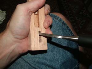 Make sure you get the groove the right size before gluing the sides together. Here, I'm having to chisel it out because it was a little too tight. |