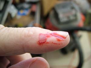 It is important to make sure your tools are sharp but I barely dragged my pocket knife across my finger and this was the result. |