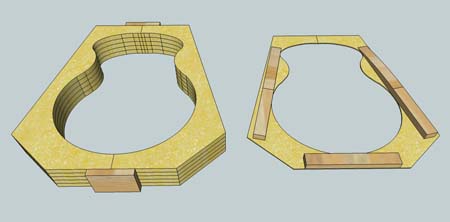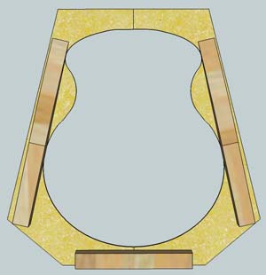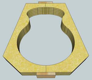 Here is the finished mold. I will use a 3/4" piece of plywood to make straps on the front and back that will keep the mold together while the guitar body is in place. |