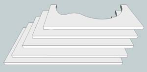 Tonight I am deciding how I am going to make the mold for my guitar. I have decided to make a solid mold as compared to a semi-solid mold. The semi-solid mold uses two sheets of plywood or mdf with wooden spacers spaced evenly around the perimeter of the mold. With the solid mold, I will use several sheets of mdf cut to shape.