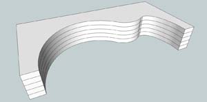 Once I have the exact pattern, I will lay that out on my 3/4" x 12" x 24" piece of mdf and I will trace the pattern on the mdf. Then I will take the mdf to the bandsaw and cut it to within 1/8" or so of the line. Then I will use a router with a flush trim bit to cut the final shape in each piece of mdf. Then I will glue each piece of mdf together for each side.