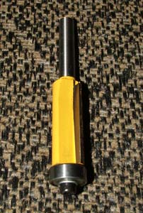 This is the flush cut router bit I will use to cut the 3/4" mdf after I cut it close with the bandsaw. The wheel on the bottom of the bit rides along the side of my 1/2" exact mdf pattern and cuts the 3/4" ply to the exact shape. |