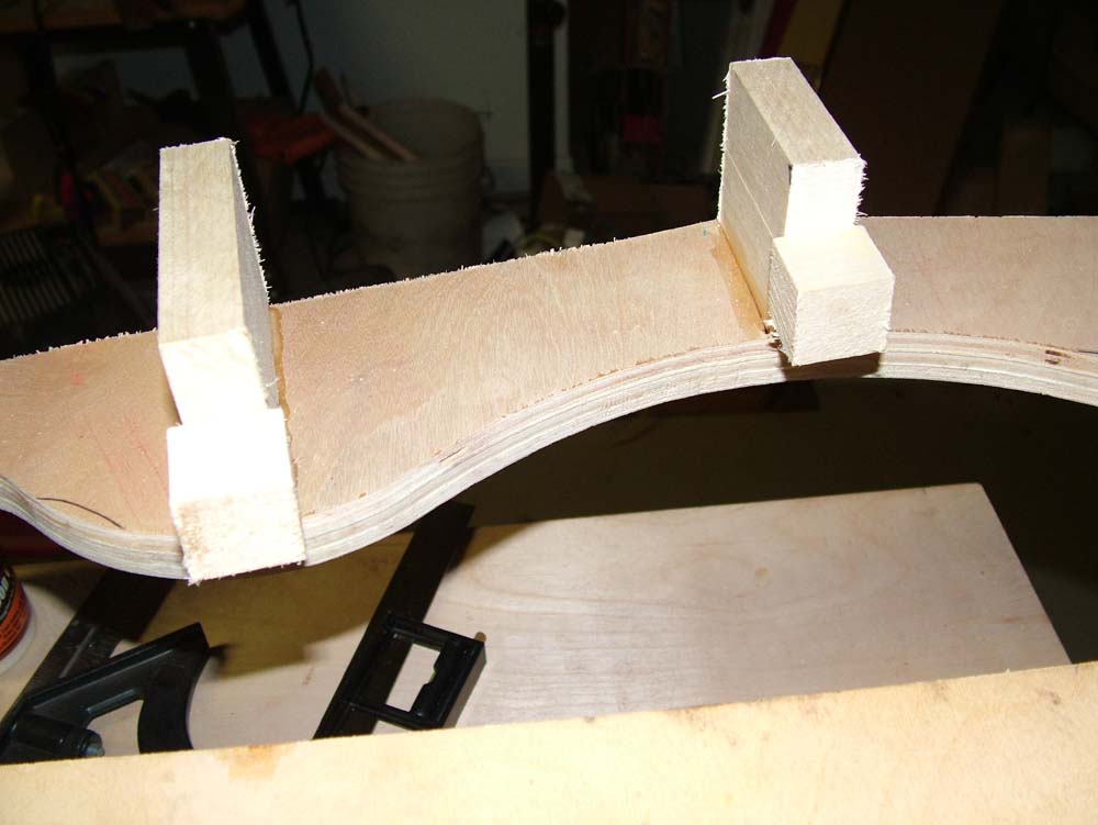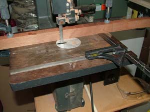 I still needed to figure out a way to trace the pattern onto the plywood for the mold and then cut the plywood. I wanted to the plywood to be cut as perfectly as the pattern and couldn't figure out a way to do it like I wanted. I wanted to use a flush trim router bit but there is not really a good way to do it that way. I ended up getting some new jig saw blades and used the jig saw to cut out the plywood. I was really pretty happy with the results. The blades cut very well and very quickly. I drilled a half inch hole in the middle of the plywood and then, instead of cutting proud of the line, I cut right on the line and it turned out well. To cut the opposite piece of plywood for the mold, I drilled another hole in the second piece of plywood and used the jig saw to cut within about a half inch of the line. Then I used one wood screw in each corner of the plywood to hold the two pieces together. Then I used my flush trim router bit and cut the second piece of plywood exactly like the first. I really enjoy using the flush trim router bit, it, along with the bandsaw are two of my favorite tools.