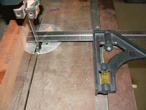 Another view showing how I use the combination square in the miter slot to set up the fence before I cut the 1" blocks. |
