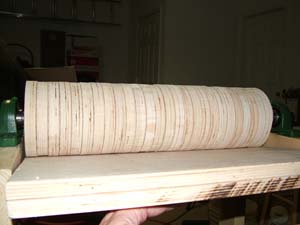 You can see that the disks that make up the sanding drum are very close to the same size. When I "true up" the drum, there won't be a lot of sanding that has to be done. |