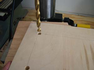 I cut the motor mount from 3/4" plywood and here I am drilling the holes to mount the 1 horsepower motor. |
